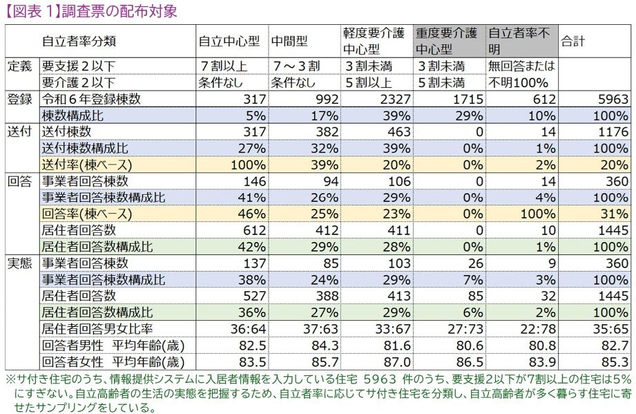 ・調査対象:自立高齢者が多く住むサ付き住宅1176棟/うち有効回答は360棟、1445人