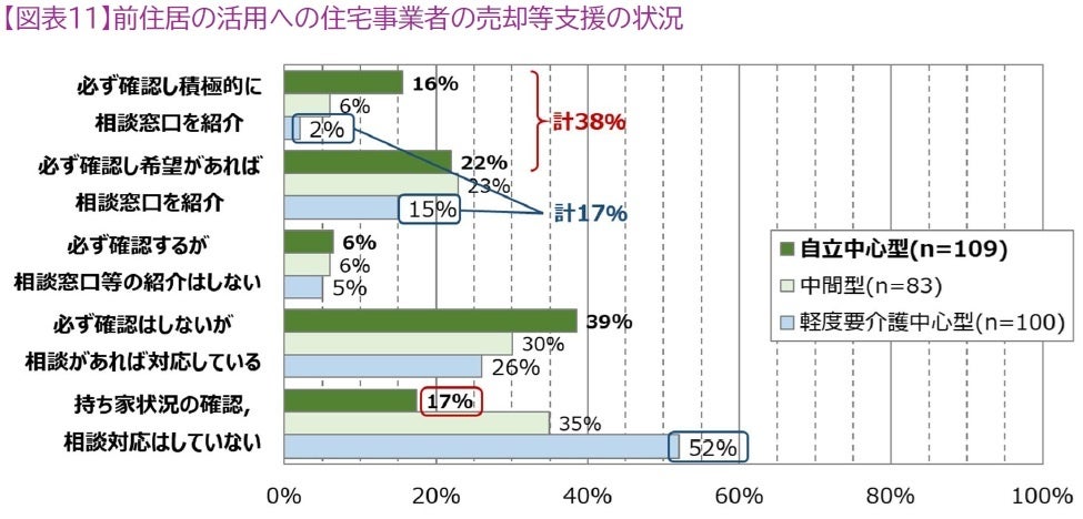 7.自立中心型の住宅事業者の38%は、前住宅の活用について相談窓口を紹介している。適切なサポートがあることで、より住宅ストックが循環しやすい仕組みが作られる可能性が示唆された。