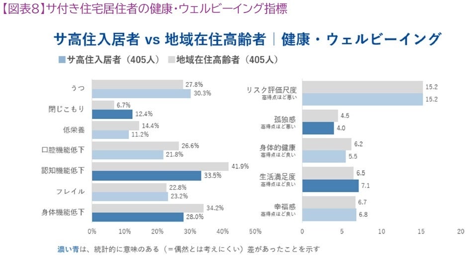 5.サ付き住宅の居住者は、地域で生活する高齢者と比較して、生活満足度が高く孤独感が低い、また身体機能・認知機能低下リスクが低いという特徴が見られる。