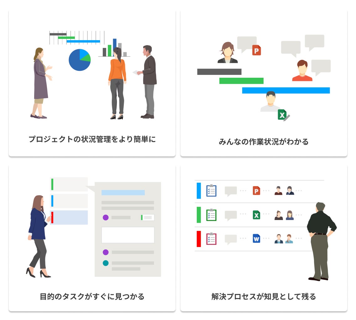 「TOI」は以下の4つの特長に代表される、ビジネス現場に最適なシンプルさと機能性を両立した課題管理アプリです。