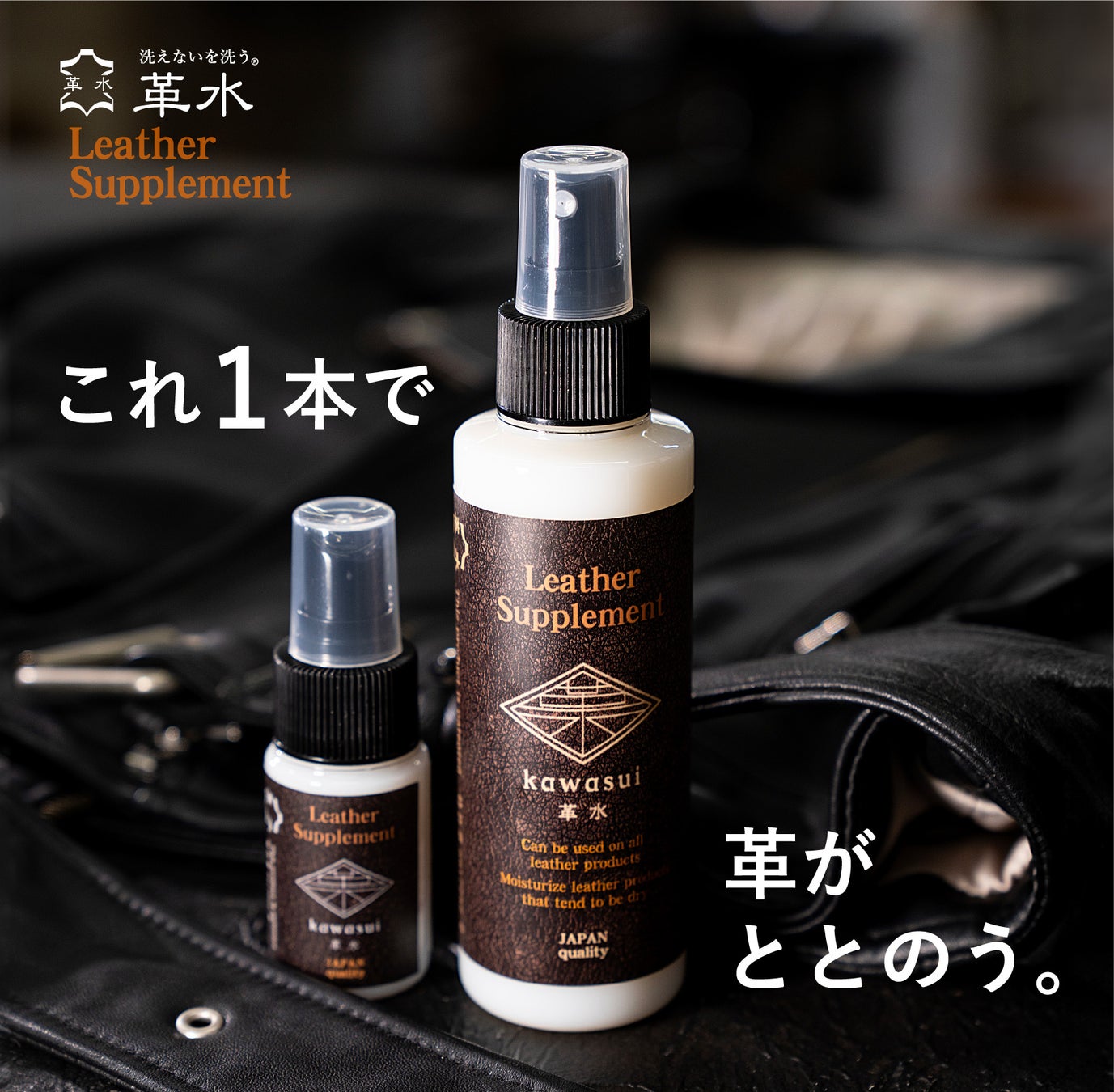レザーサプリメントは革に必要な成分だけで形成されており、安定剤や防腐剤などの化学薬品は一切含んでいませんので、革に良いメンテナンス剤でもあり、メンテナンスをする方の肌にも影響を与えない、まさにハイブリッドなメンテナンス剤です。