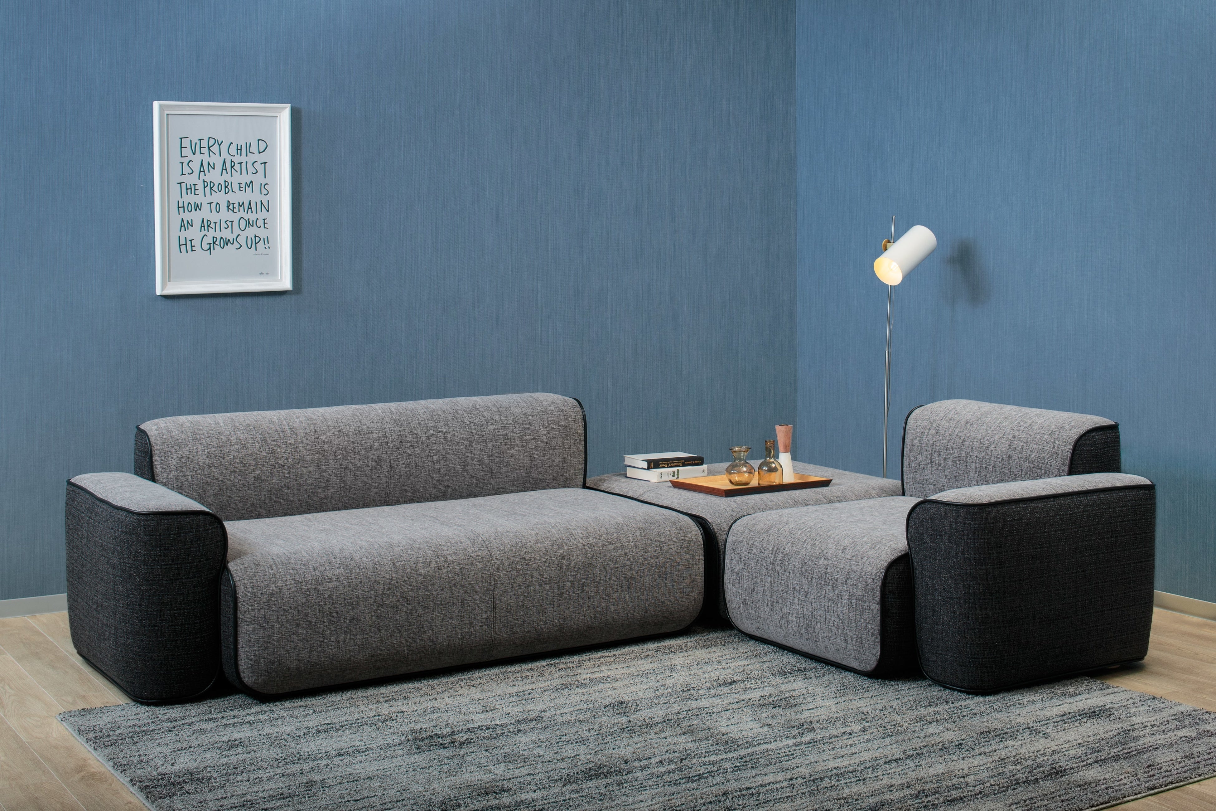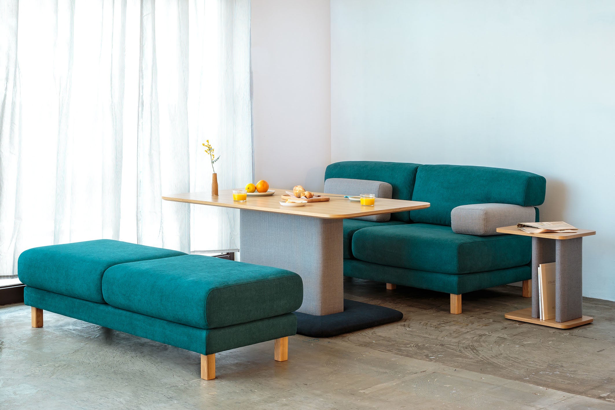 これまで、家族のくつろぎを想定したデザインのソファを多く提案してきたブロッコ。今回、6畳などの省スペースにも置ける快適なソファの需要の高まりに応えるべく、都心部を想定した住居25〜40平米のひとり暮らしやふたり暮らしでも、圧迫感なく空間を有効に使えるように意識したデザインのワンアームソファ「コテージア」を提案することになりました。