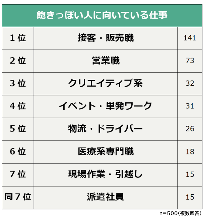 【飽きっぽい人に向いている仕事ランキング】男女500人アンケート調査
