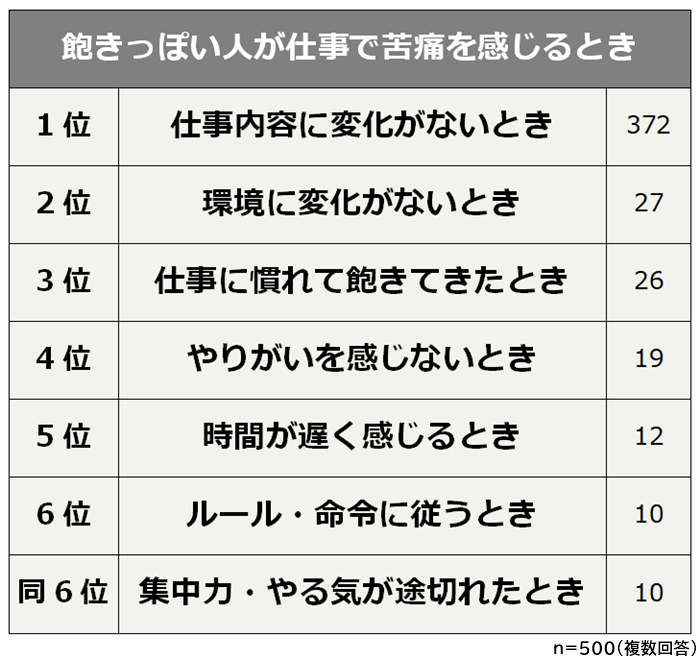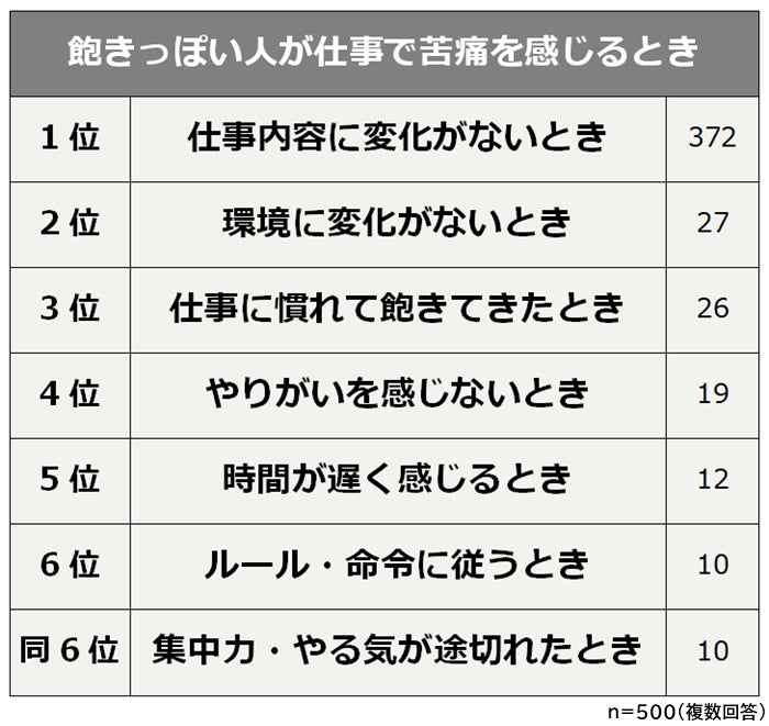 - 飽きっぽい人が仕事で苦痛を感じるのは「仕事内容に変化がないとき」