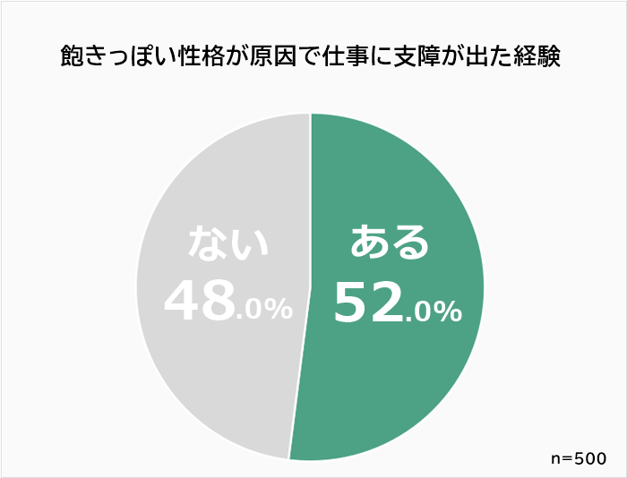 - 飽きっぽい性格が原因で仕事に支障が出たことがある人は52.0%