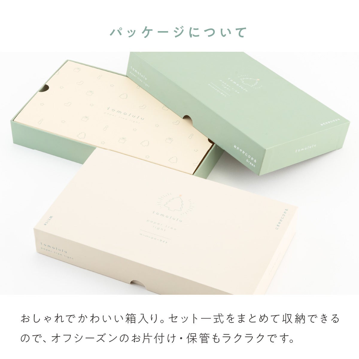 ツリーとして、ライトとして、そしてインテリアとしても楽しめる、一石三鳥のクリスマス雑貨tomolulu。ペーパー部分を優しく開くだけでツリーが完成する、どなたでも簡単に飾れる手軽さが特徴です。どんな空間にも合わせやすい、シンプルモダンなペーパーツリーライトはいかがでしょうか。