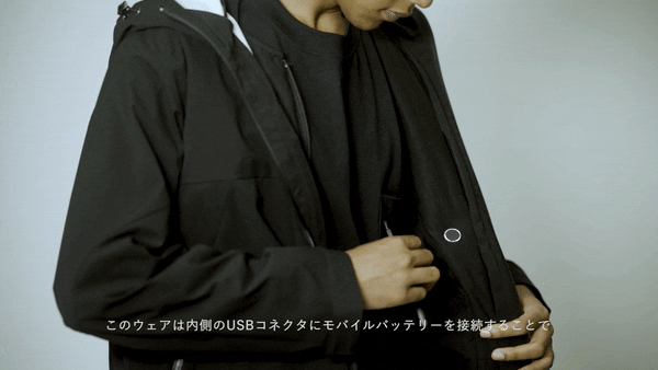 モバイルバッテリーで起動する高機能な電熱ユニットを搭載した、機能、デザイン、快適性を兼ね備え、様々な着こなしが可能なウェアです。