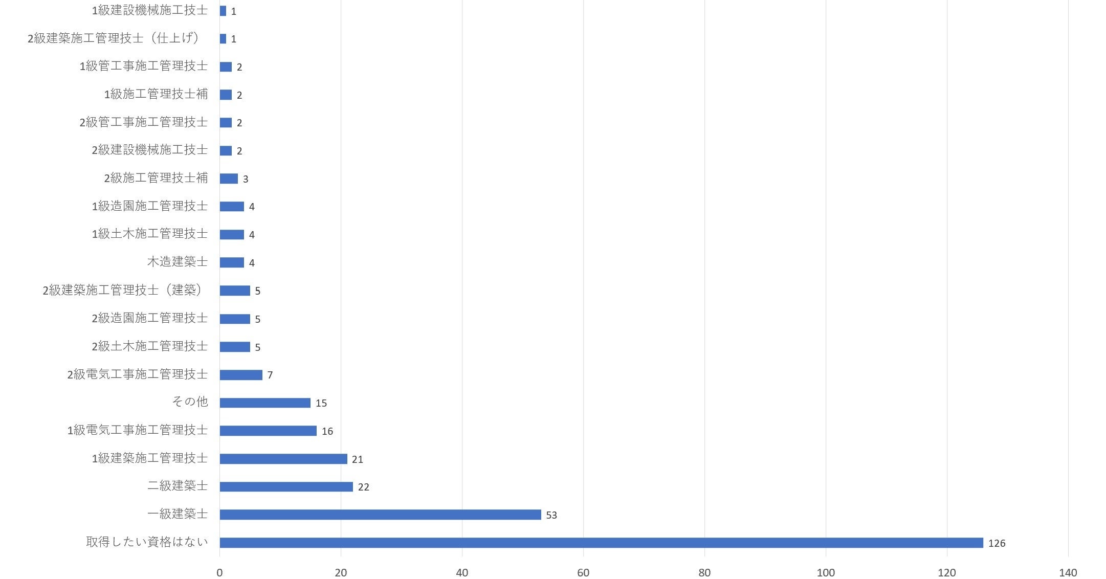 そして「これから建築関連で取得したい資格を教えてください」という設問では、53票を獲得した、一級建築士が第1位となりました。