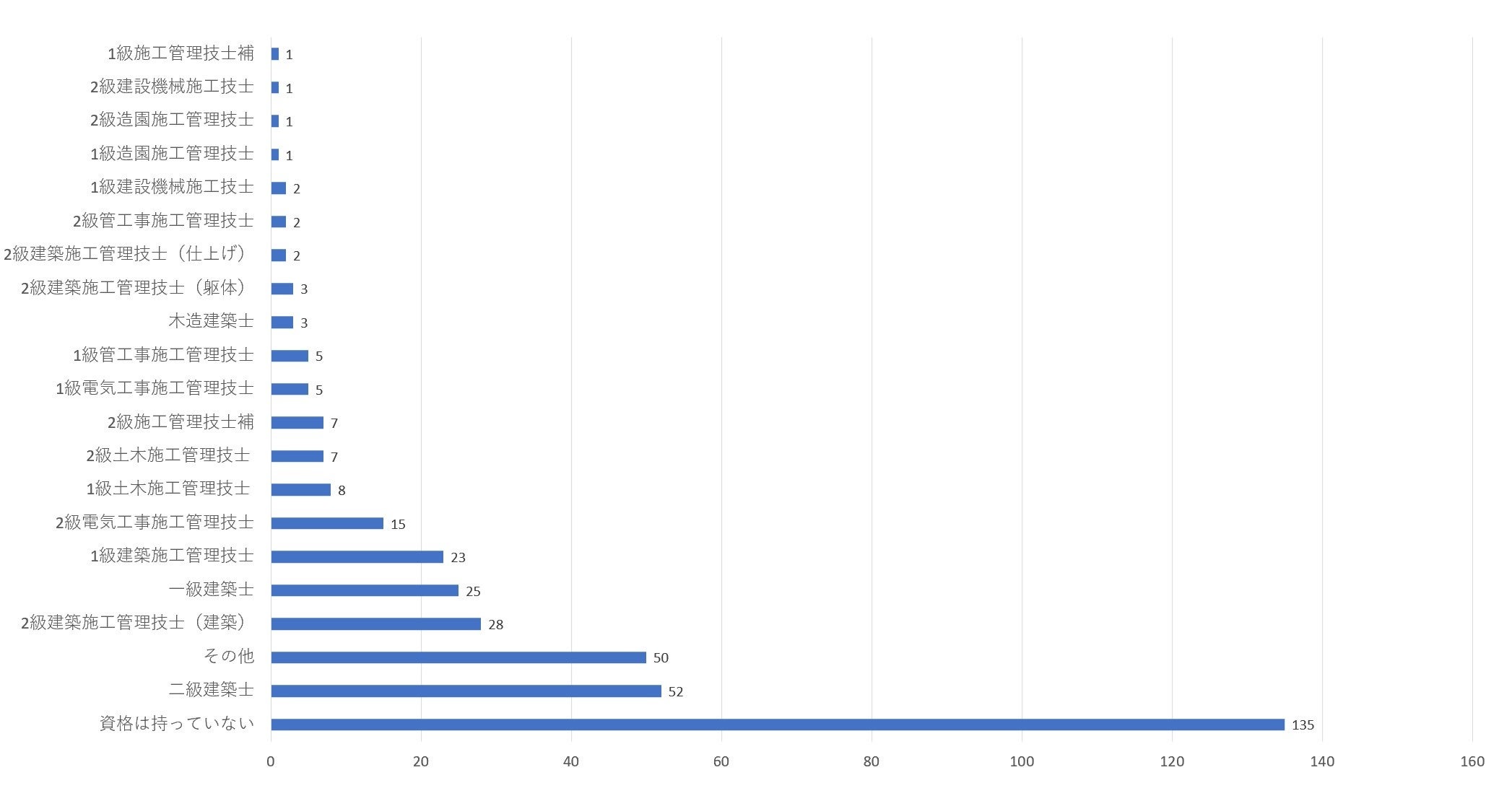 また「建築関連でお持ちの資格があればすべて教えてください」という設問では、52票を獲得した、二級建築士が第1位となりました。