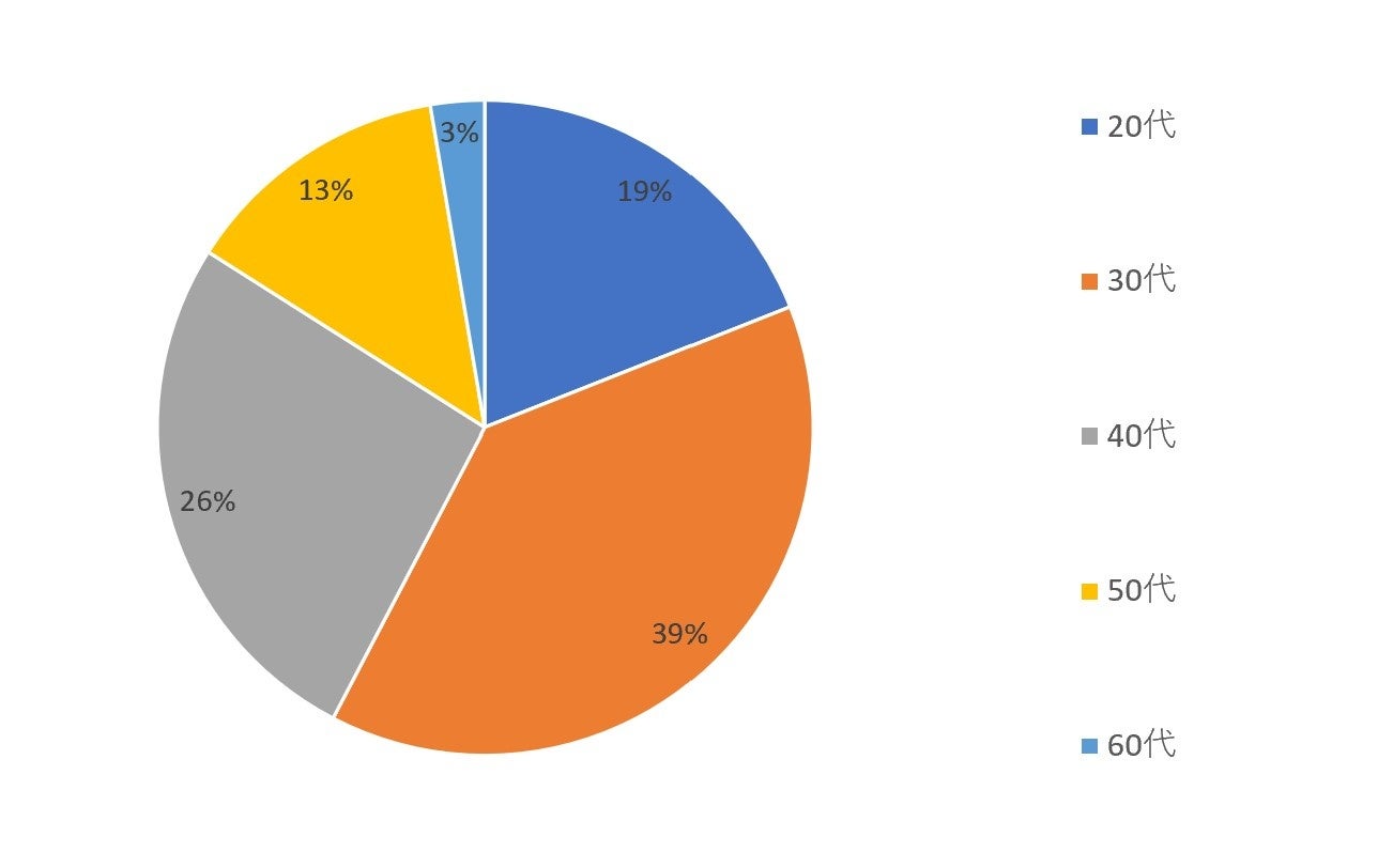 本アンケートの回答者の世代は、30代が39%、40代が26%となり、全体の65%を占めています。