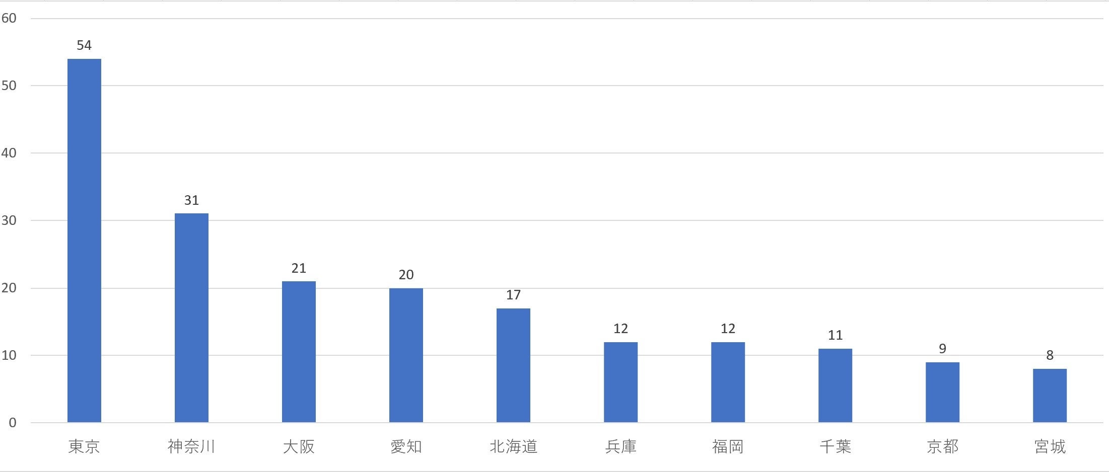 また、回答者が住んでいる都道府県の上位10位も確認していきましょう。