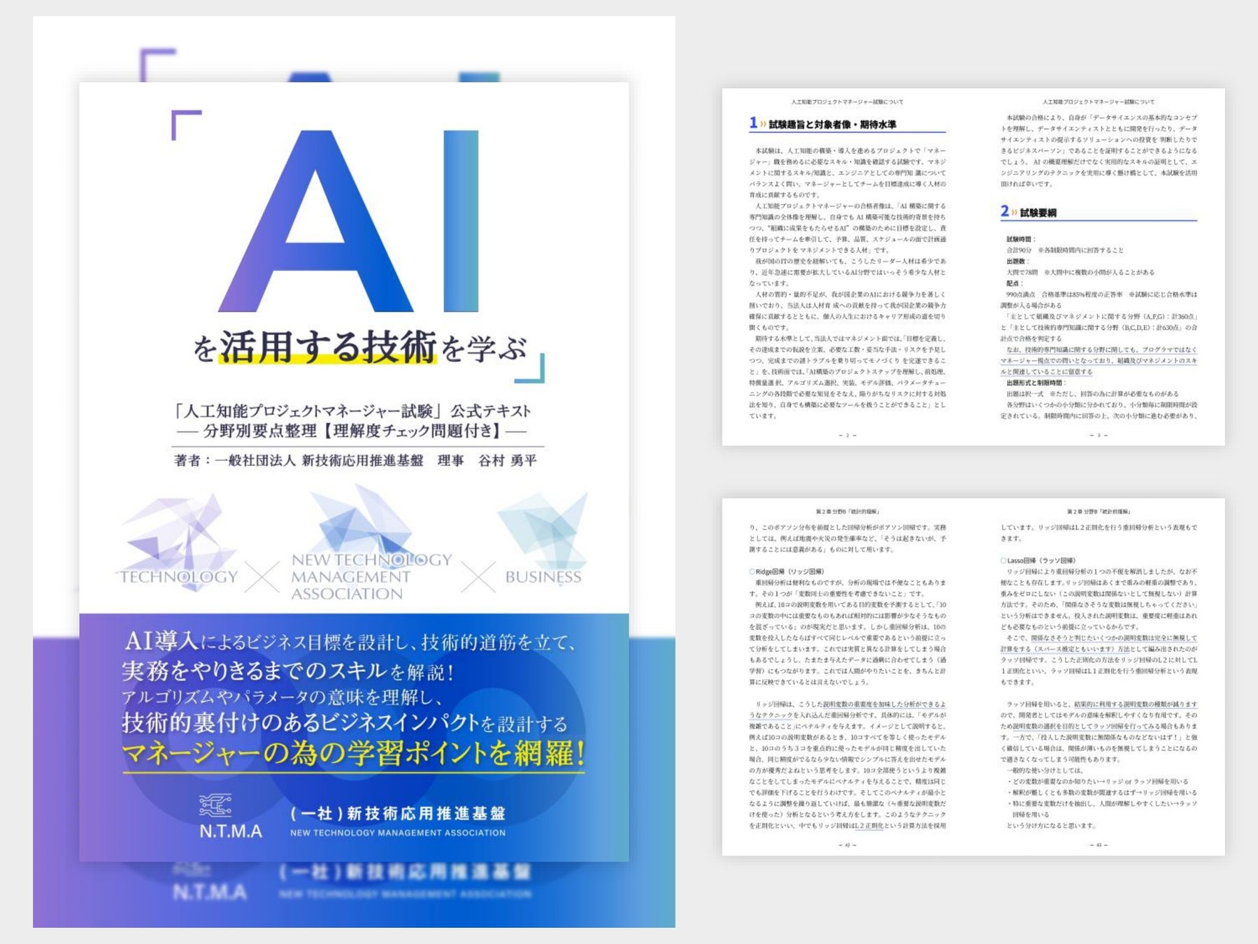一般社団法人 新技術応用推進基盤(代表理事:谷村勇平)は、2023年12月22日(金)より、「人工知能プロジェクトマネージャー試験」(商標登録済資格)の公式テキストを発売いたします。