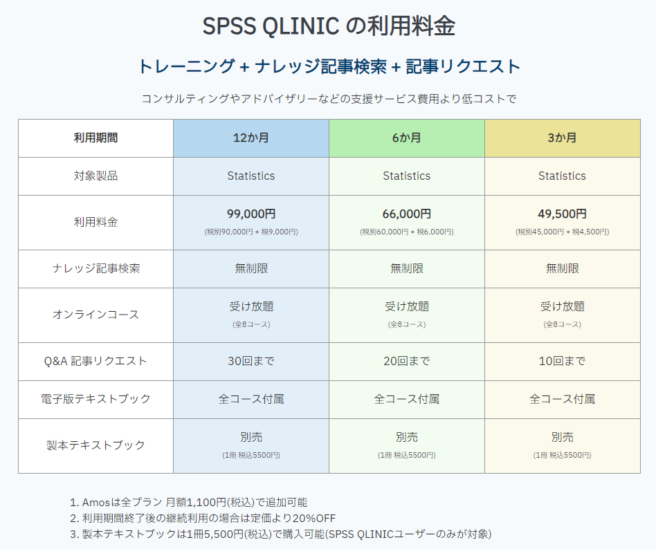 スタッツギルドで提供してきたこれまでのサービスを包括する形の新サービスとなり、SPSS QLINICでは現在提供しているすべてのトレーニングコースが今後リリースされる新コースを含め定額で受け放題となります。