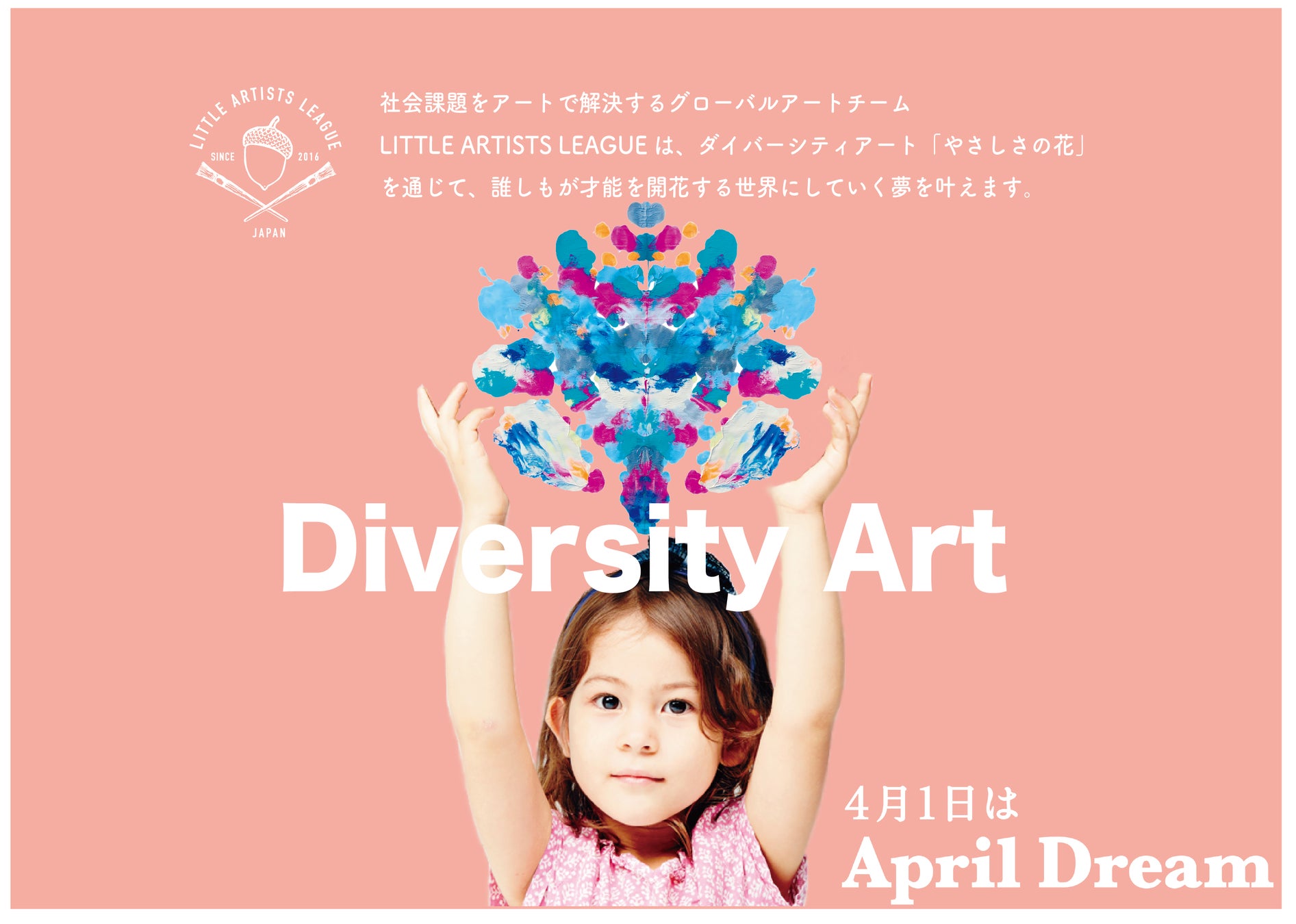 当法人は、4月1日を夢を発信する日にしようとするApril Dreamに賛同しています。このプレスリリースは社会課題をアートで解決するグローバルアートチーム「LITTLE ARTISTS LEAGUE」の夢です。