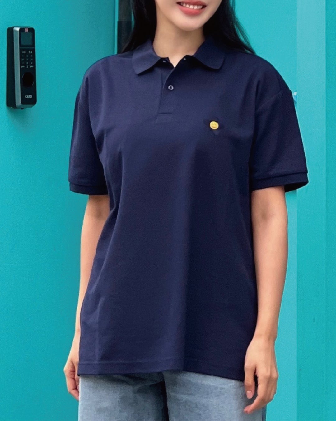 (花モチーフロゴ)ホワイト/ブラック/ネイビー