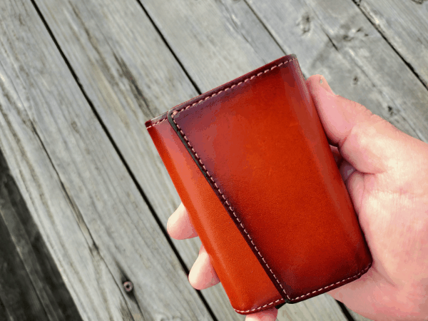 脱着式のカードケース部はアルミ製ですが、カードケース部もベジタブルタンニンレザーで包み込む仕様となっています。