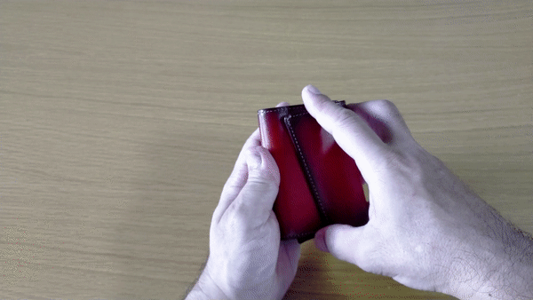 一見すると本革の小さめなお財布ですが、スライドレバーでカード一気に取り出せる点や、マグネット脱着できるカードケースでミニマルな運用も可能な点が特長の製品です。