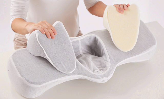 これまでの頚椎枕より確実な頚椎保護を目指し、横寝の際も背骨に負担がかかりにくい睡眠姿勢を保持できるよう設計された枕です。