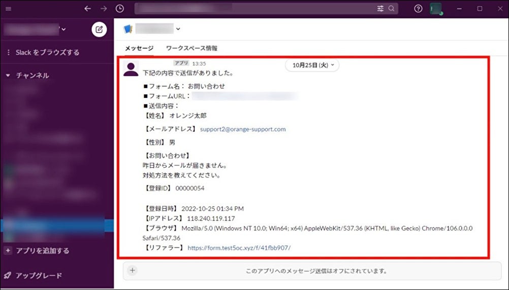 オレンジフォームに投稿された内容をSlackへ自動的に転送する機能です。