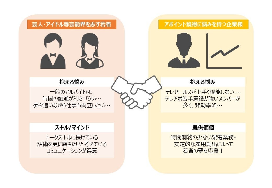 株式会社ジャストファイン・株式会社キャラプロ業務提携 若者の夢を応援!芸人・アイドルの卵×アウトバウンドセールスで企業のアポイント獲得を支援