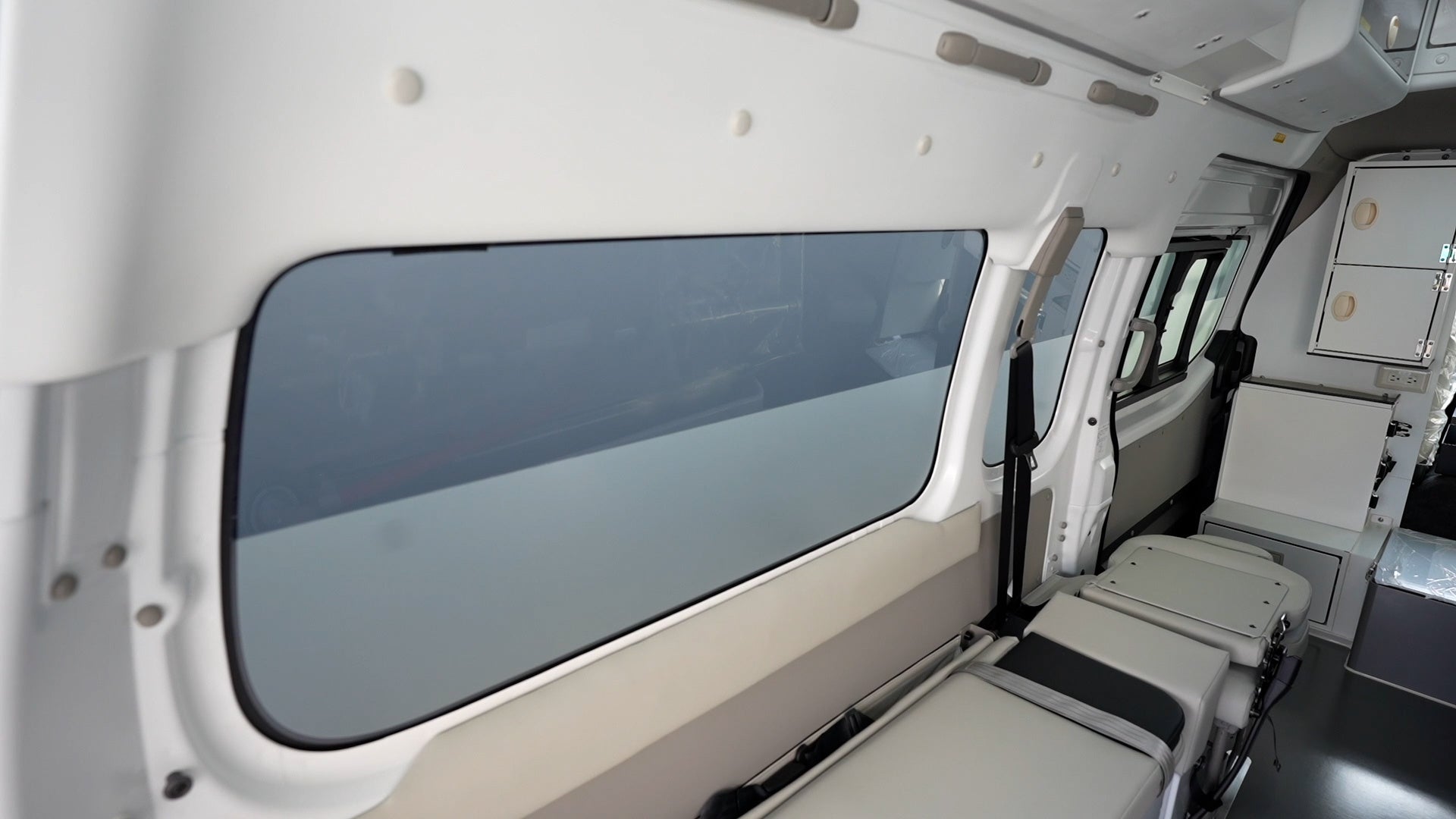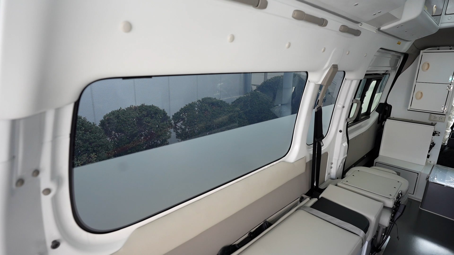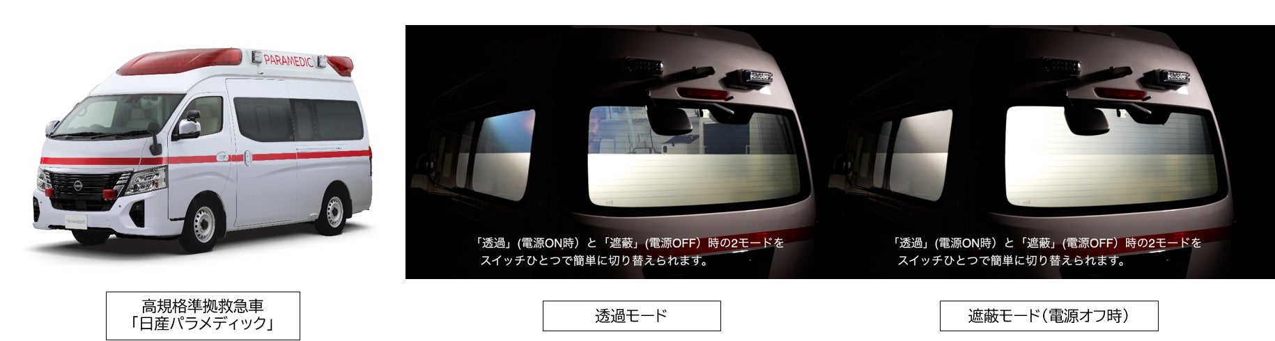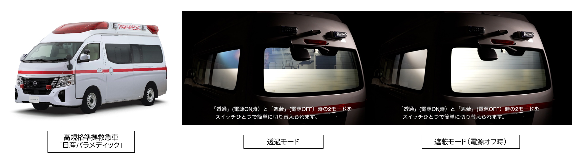 救急車「日産パラメディック」にスイッチ1つで瞬時に視界の切替ができる調光フィルムSILFが採用されました。