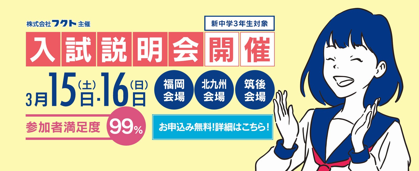 【株式会社フクト主催】新中学3年生向け 入試説明会を福岡・北九州・筑後会場で3月15日(土)・16日(日)に開催!