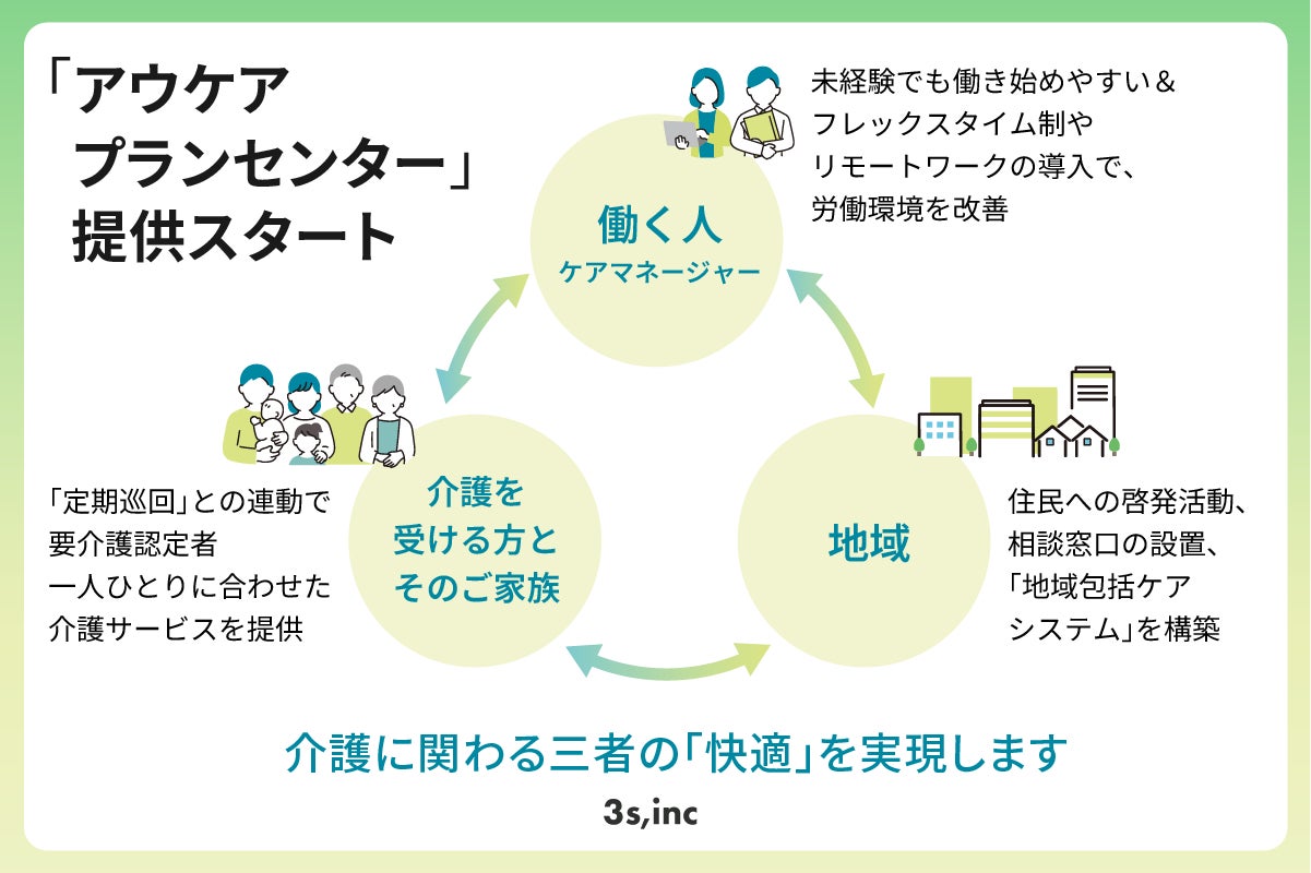 スリーエス株式会社が、“その人に合うケア”を提供する居宅介護支援事業所「アウケアプランセンター」の運営を2025年4月開始