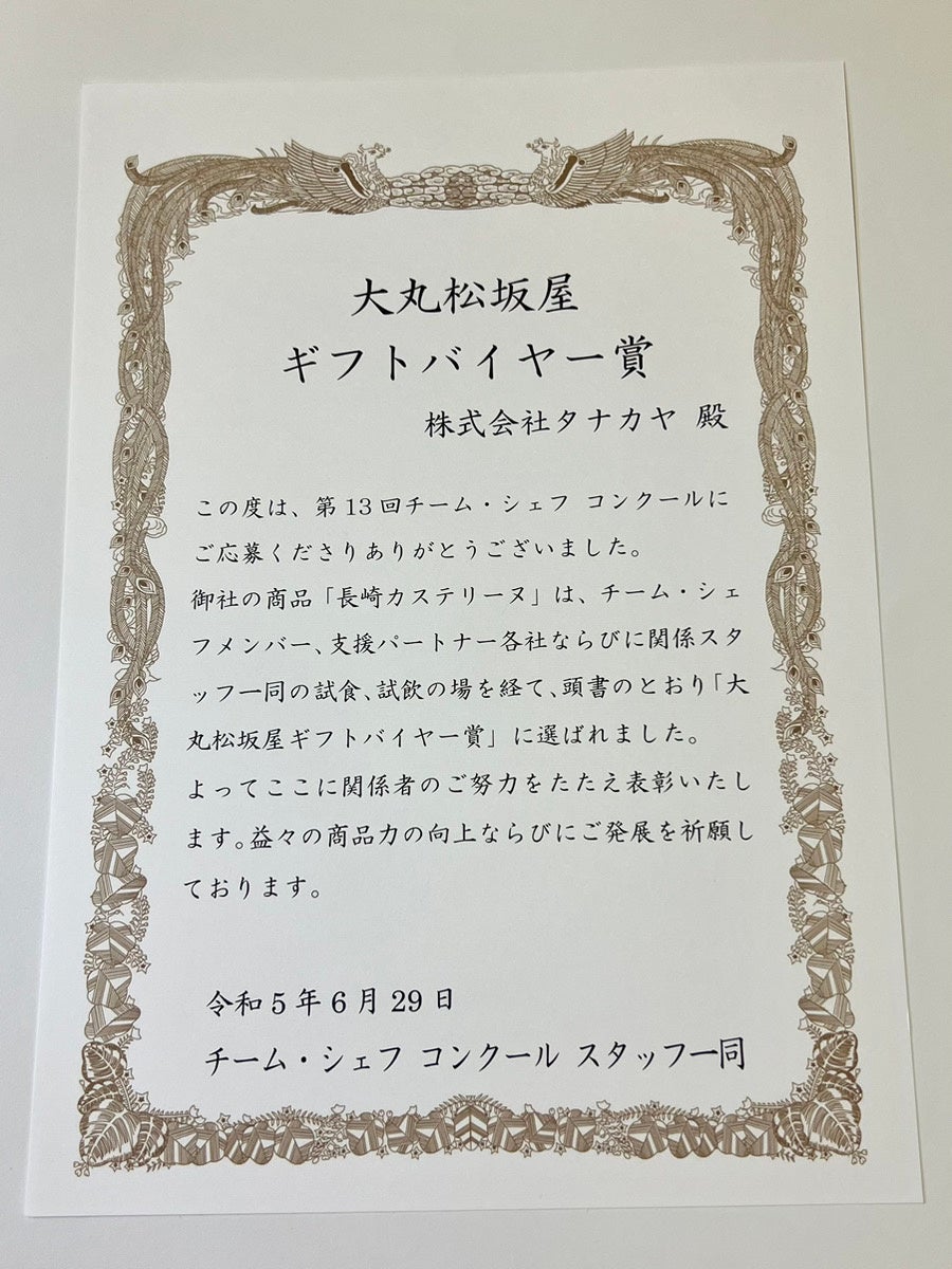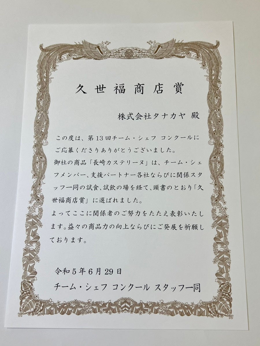 食のプロが推薦する〈チーム・シェフコンクール〉で「長崎カステリーヌ」が3つの賞を受賞しました!