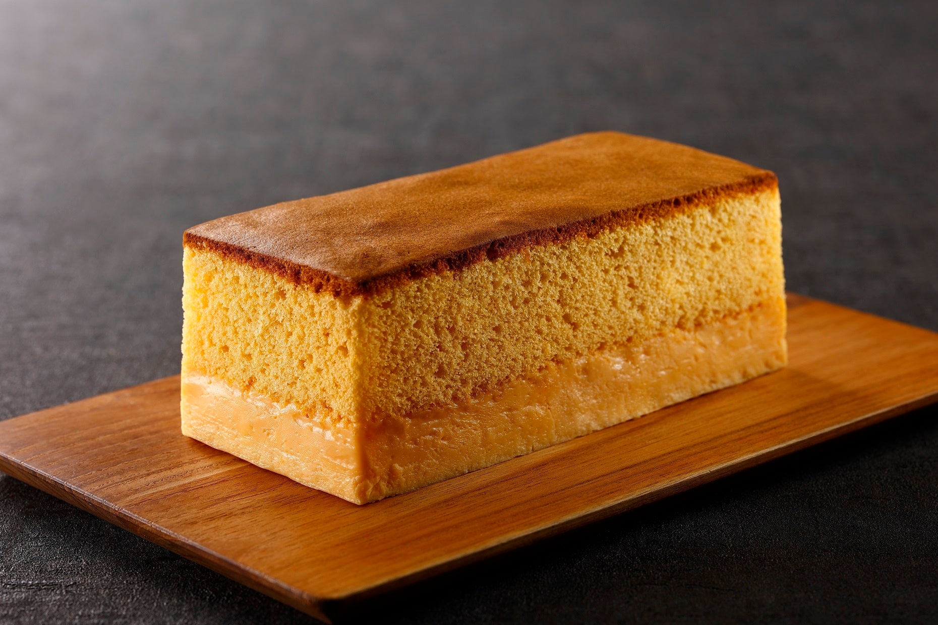 特徴はたまご&チーズのまったりとろける濃厚テリーヌがふわふわのカステラを包み込む、これまで体験したことのない食感。2層のまったく異なる食感がそれぞれの味わいを引き立て合い、混ざり合いながら、新しい味わいを生み出します。
