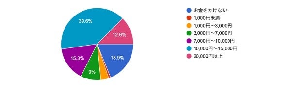 月額「10,000円から15,000円」を運動に投資するシニアが39.6%と最も多く、「7000円から10,000円」が15.3%、「20,000円以上」が12.6%と投資金額が高め。一方「お金をかけない」18.9%と回答したシニアも。
