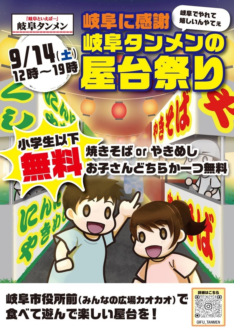 9/14 ぎふメディアコスモスにて、岐阜タンメン主催のお子さん向け屋台イベントを開催します。地域のみなさんぜひご来場ください!