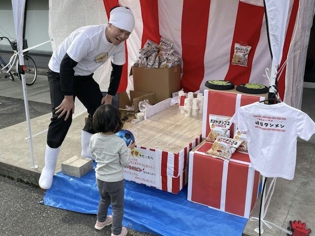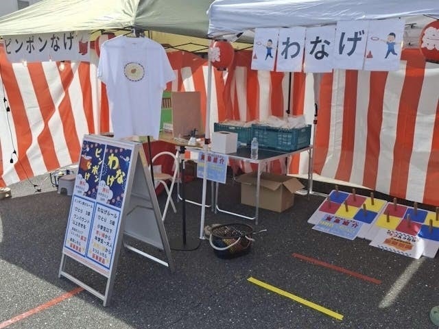 その他、100円で参加できる「わなげ」や「ピンポン玉ゲーム」では、豪華景品が当たるチャンスも!さらに、小学生のお子さんが無料で体験できる「屋台店員さん体験」では、実際に屋台の店員として接客を楽しめます!屋台の店員さんになりきってみよう!