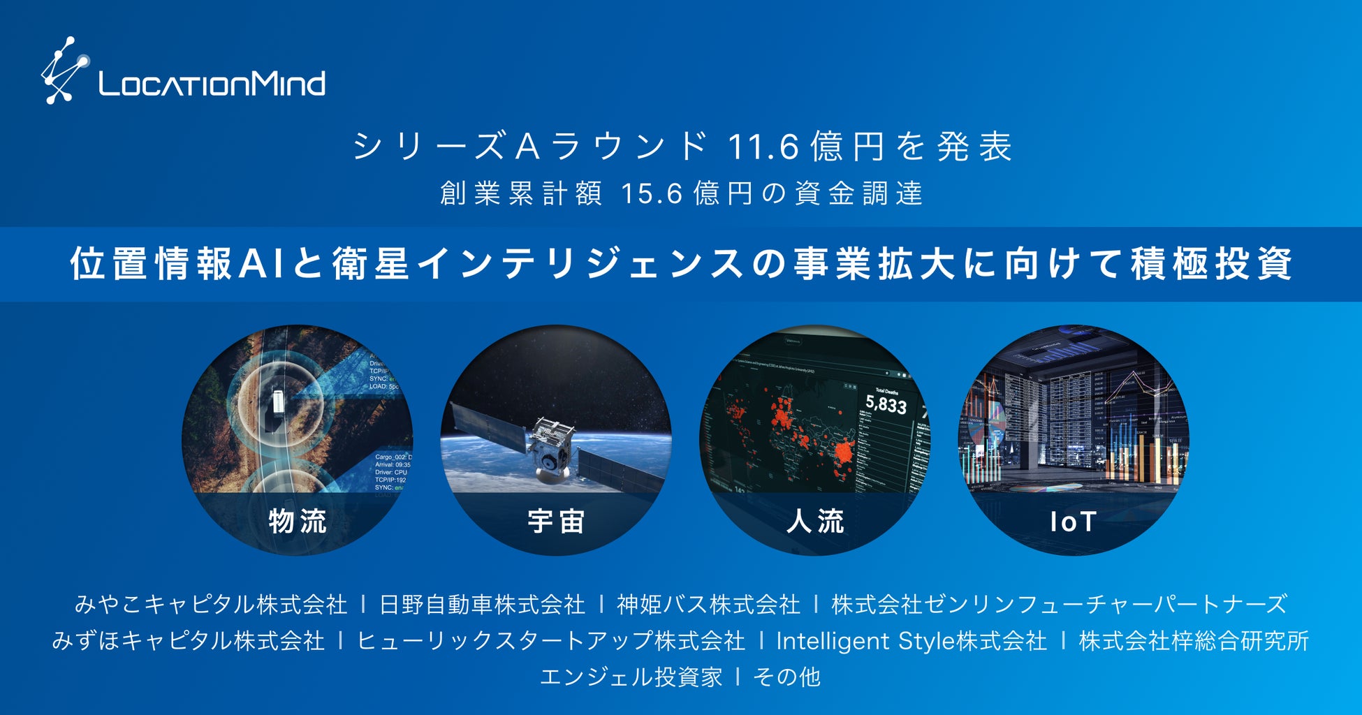 位置情報AIと衛星インテリジェンスベンチャーであるLocationMind株式会社(本社:東京都千代田区 代表取締役:桐谷直毅、以下LocationMind)は、本日までに、シリーズA資金調達ラウンドにより、総額11.6億円の資金調達を完了いたしました。今回の資金調達を含めた創業からの累計資金調達額は、総額15.6億円となります。