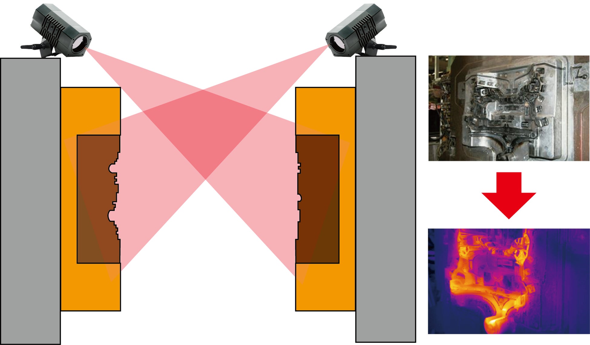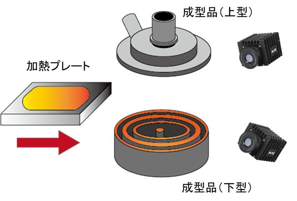 目視できない金型キャビティの表面温度をサーモグラフィで監視します。