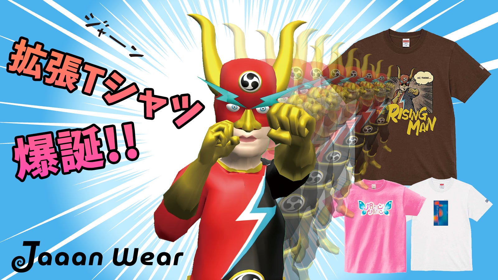 「Jaaan Wear」(ジャーンウェア)とはTシャツが新たな「デジタルコンテンツの表現の場として成り立つこと」にチャレンジするブランドです。「ジャーン!」と、なにか得体の知れないものが立ち現れる瞬間をブランド名にしました。今後もたくさんの作品を提供し、この可能性に楽しみながらチャレンジを続けていきます!