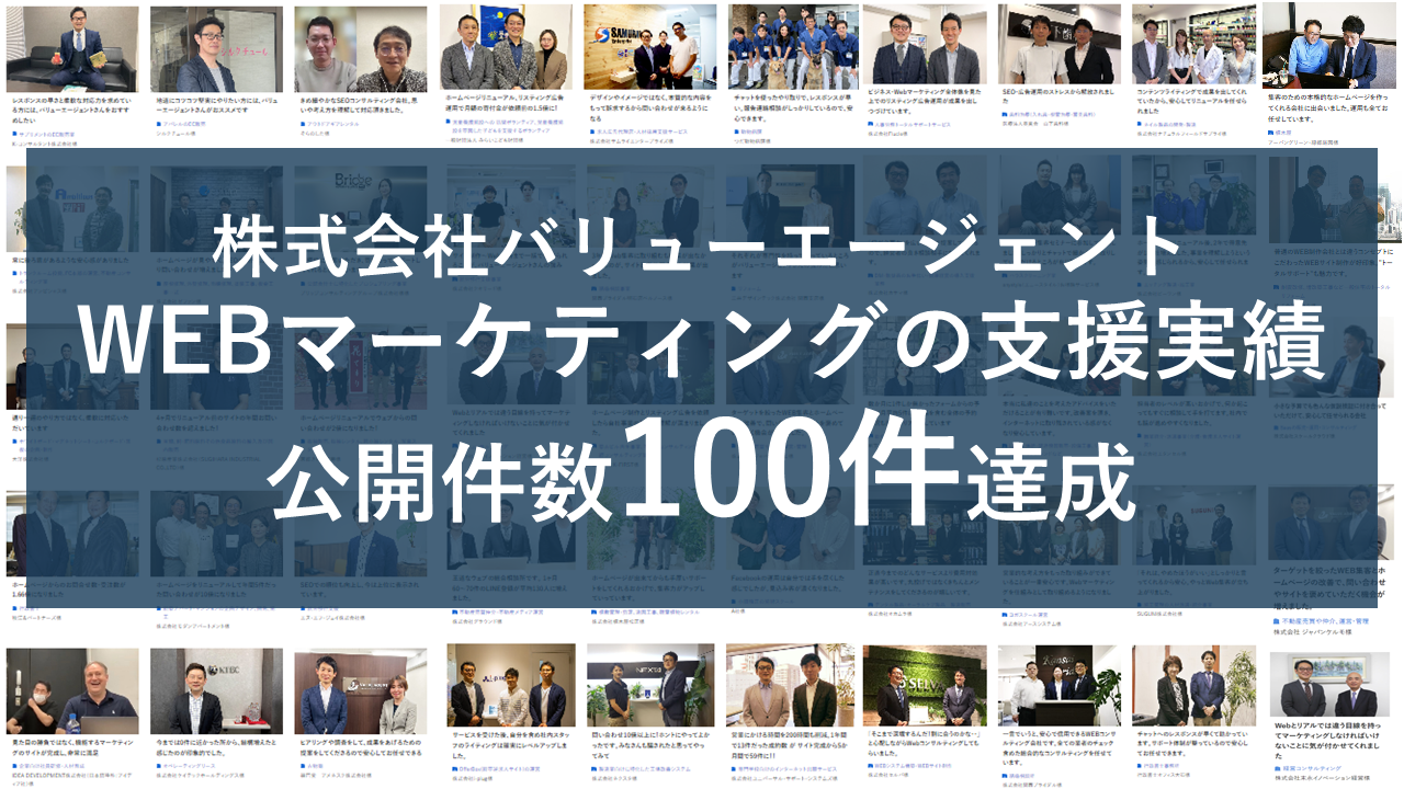 【WEBマーケティングの成功事例100件公開!】株式会社バリューエージェントが成果の出た事例の公開数100件達成