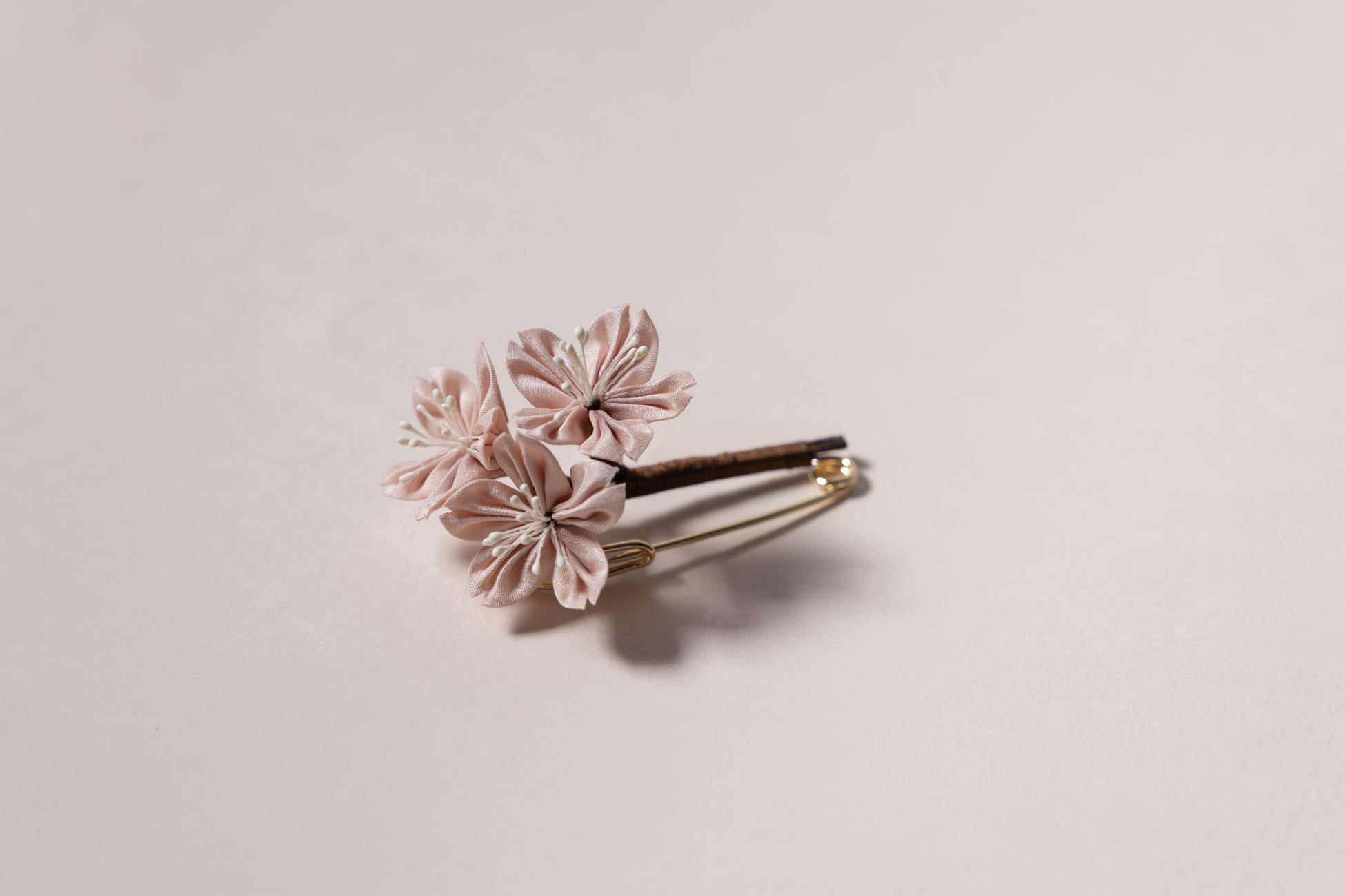 ・桜染めの生地を使用したつまみ細工アクセサリー