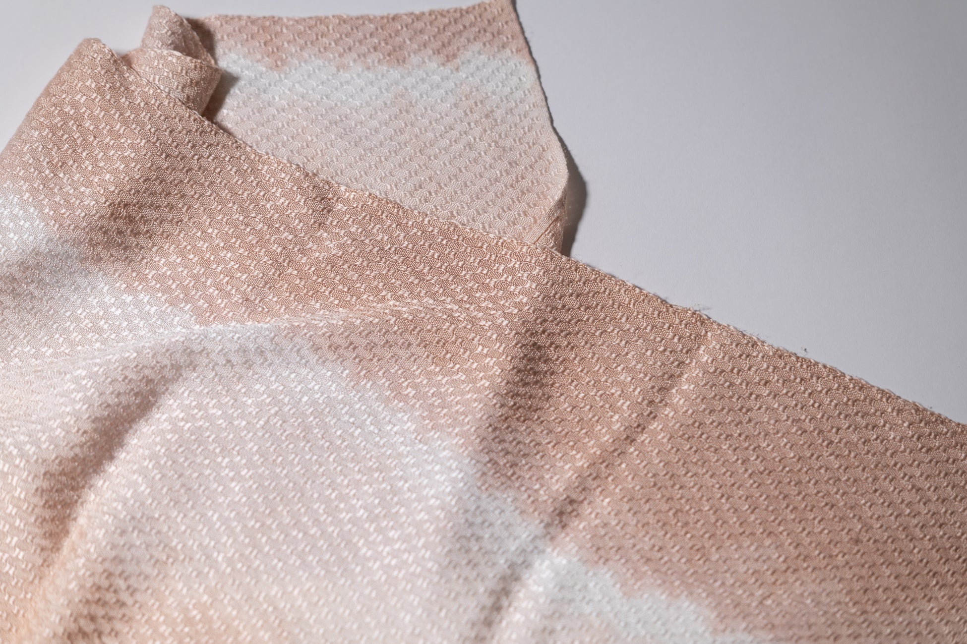 桜縁-owEn-の製品の中には、きぬのいえ独自の技法である オーロラ染め(一浴多色染め)で染め上げたスカーフがあります。