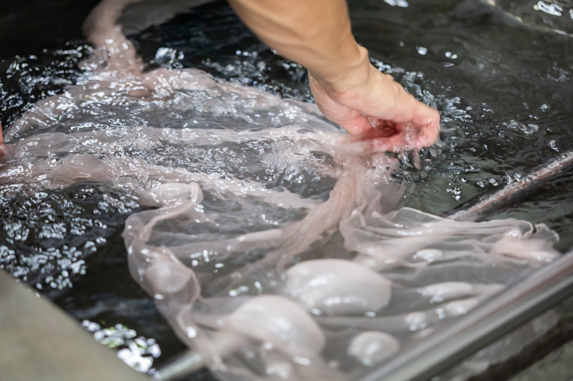職人が布の状態や染まり方を見極めながら染色を行うことで、色の重なりや柔らかな風合いが生まれます。