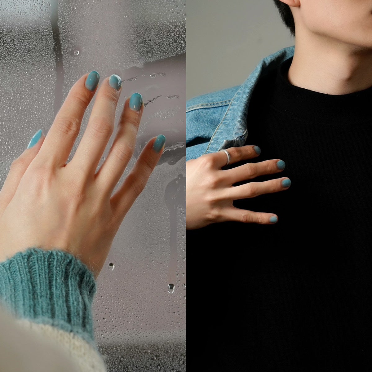 塗っている瞬間から色が変化する、ブルーにもグリーンにも見える不思議で高貴なカラー。