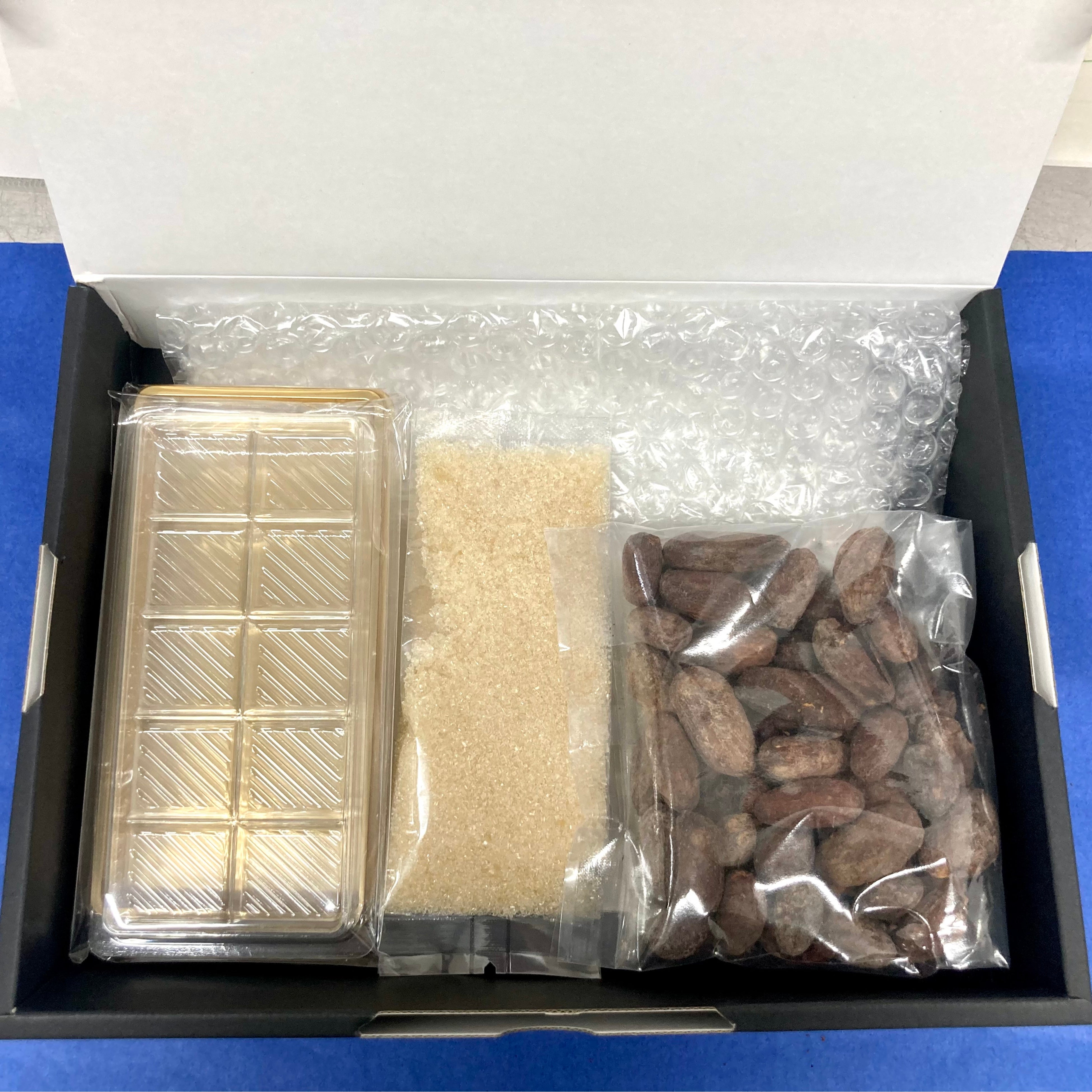 Bean to Bar を自宅で体験できるキットになります。ご自由にお好きなカカオ濃度【カカオと砂糖の比率(%)】を調節ください。家族や友人と力を合わせて作成し、世界に1枚しかないチョコレートをお楽しみください。