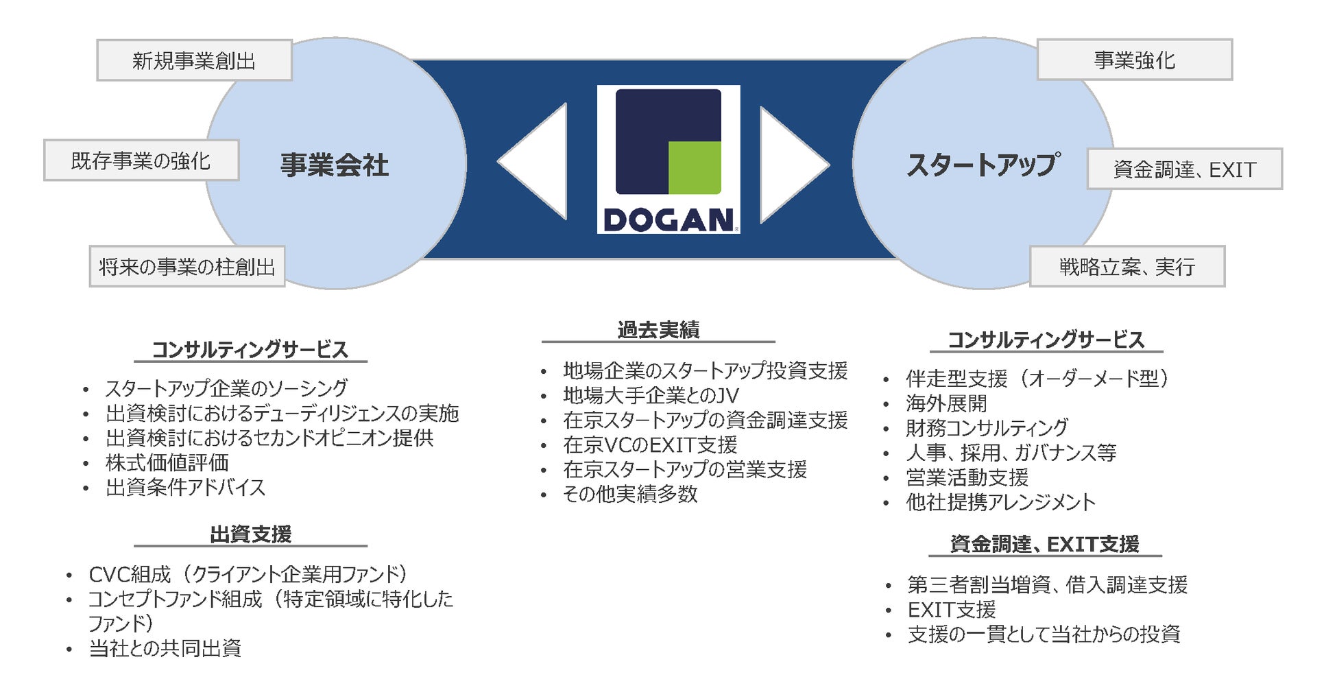 【事業会社とスタートアップを繋ぐハブ・推進役としてのドーガンのイメージ】