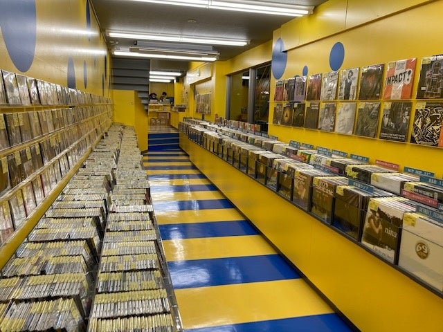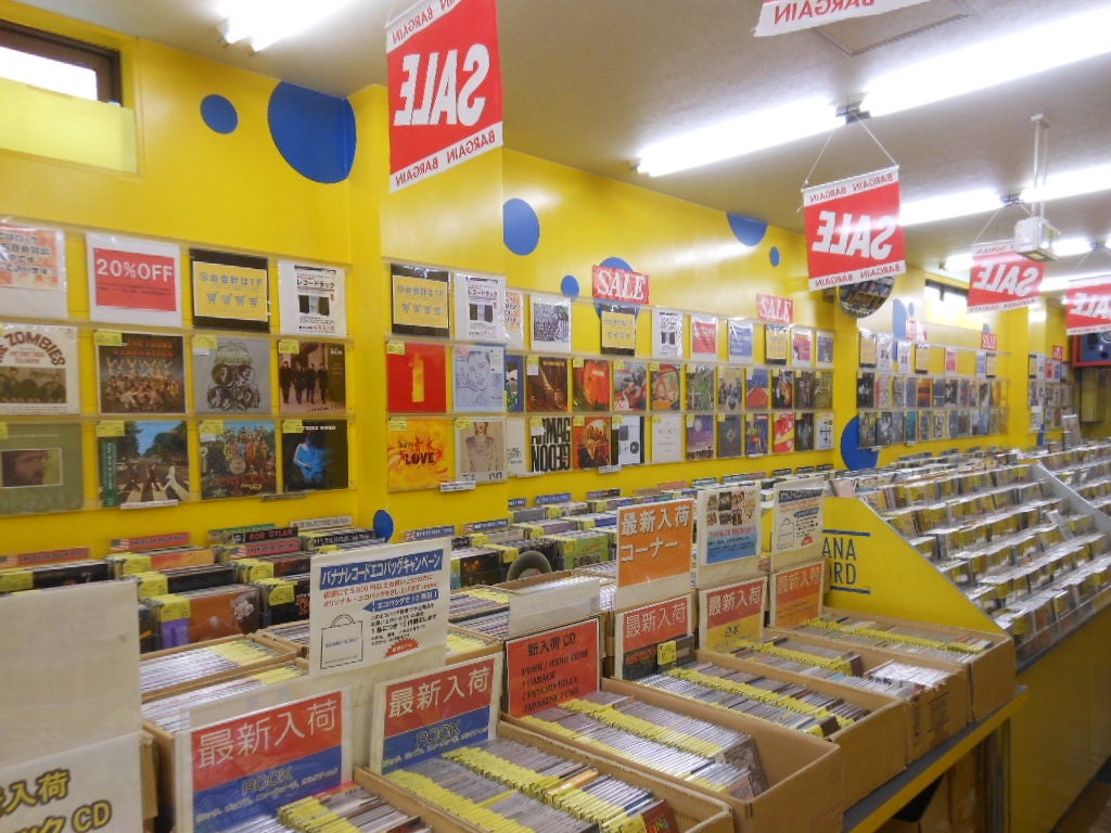 中古レコード専門店としては老舗で創業40年の歴史ある店舗で、黄色いバナナのマークが目を引くポップなお店です。