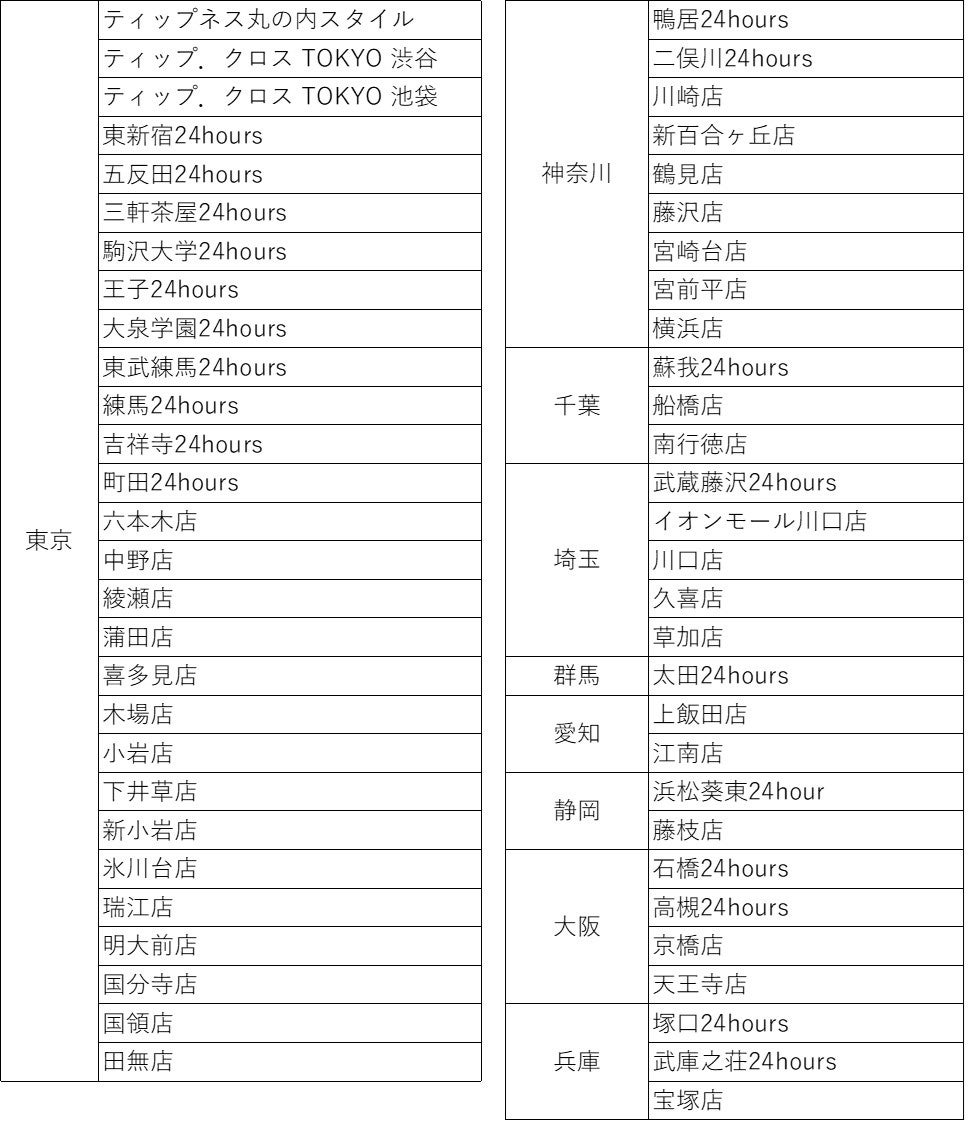 【2022年1月4日時点「ティップネス」の提携店】