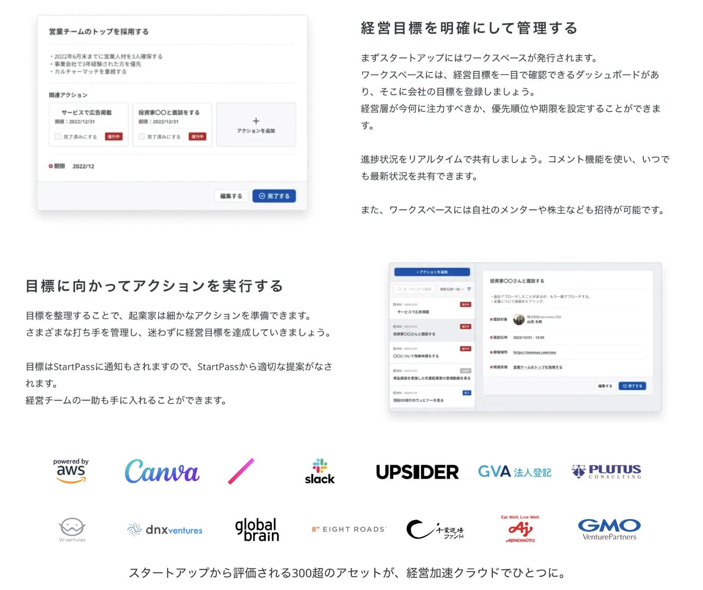 ご参考:StartPass、世界初のスタートアップ経営を前進させるプラットフォーム『StartPass経営加速クラウド』をローンチ(22/10/27)