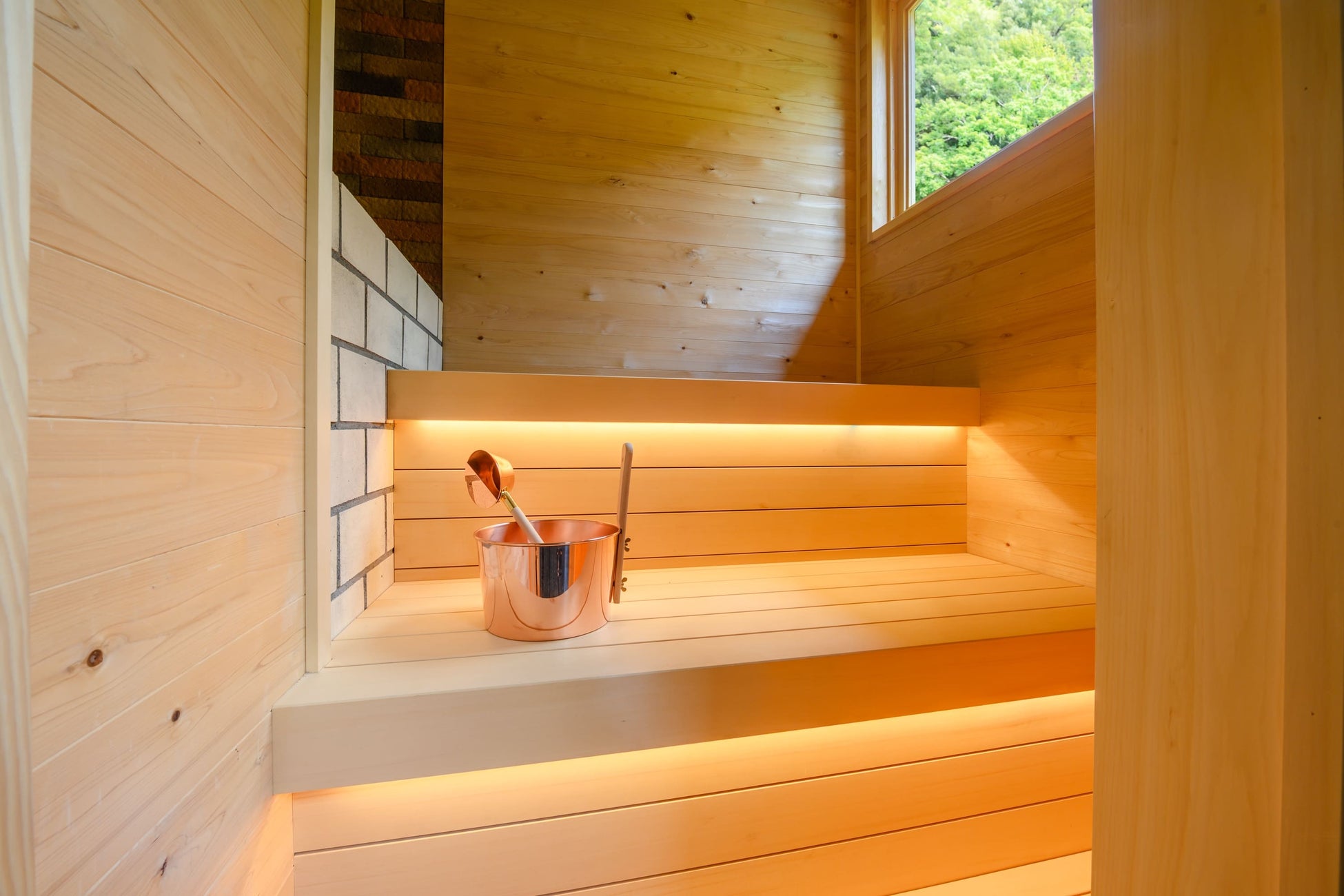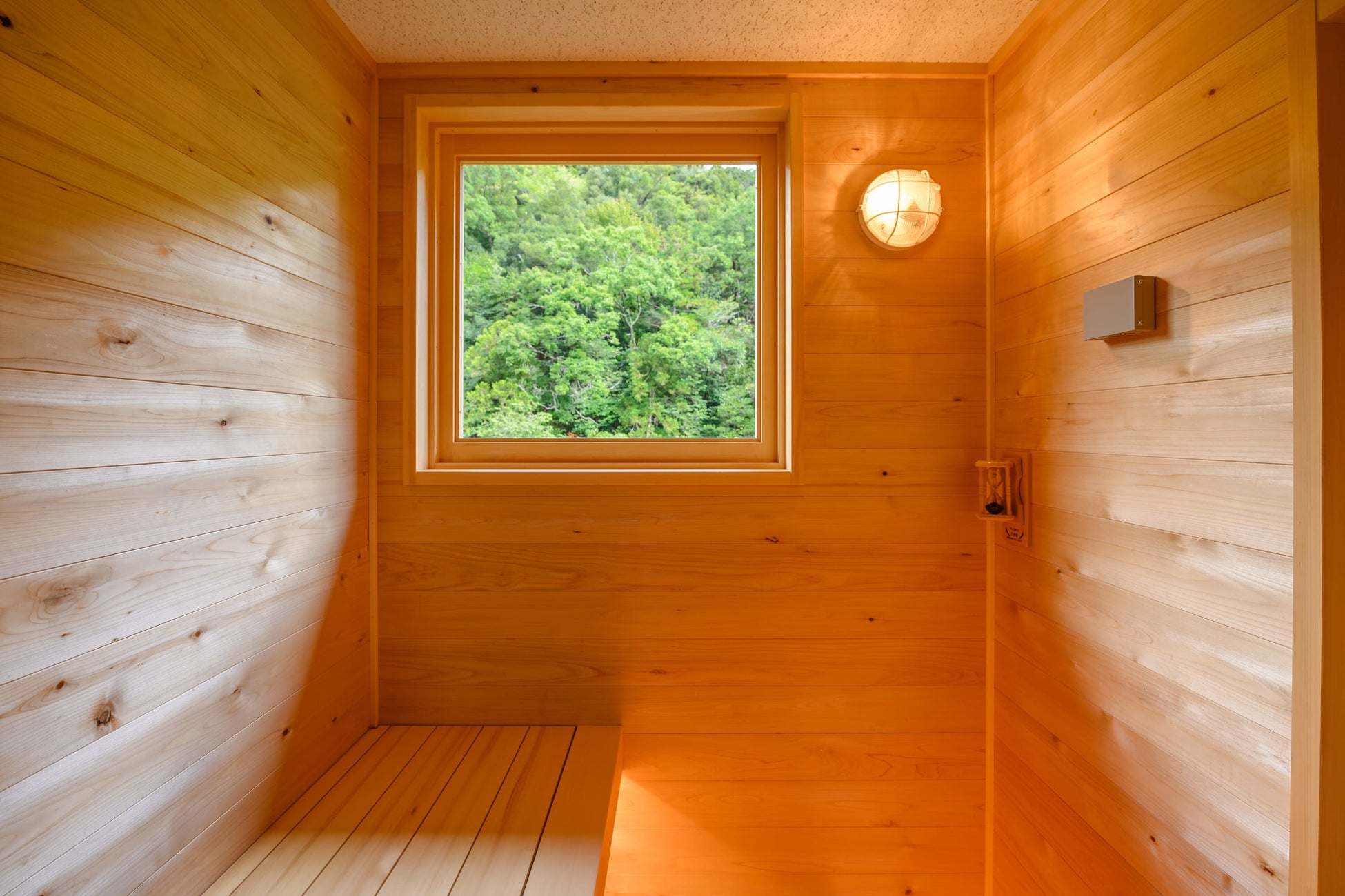 今回は、洋室タイプの露天風呂付客室にも、プライベートサウナを新設すべく、リニューアルを実施しました。