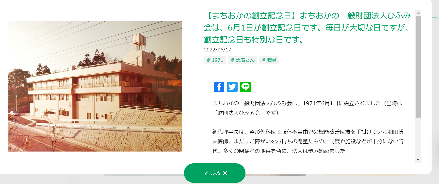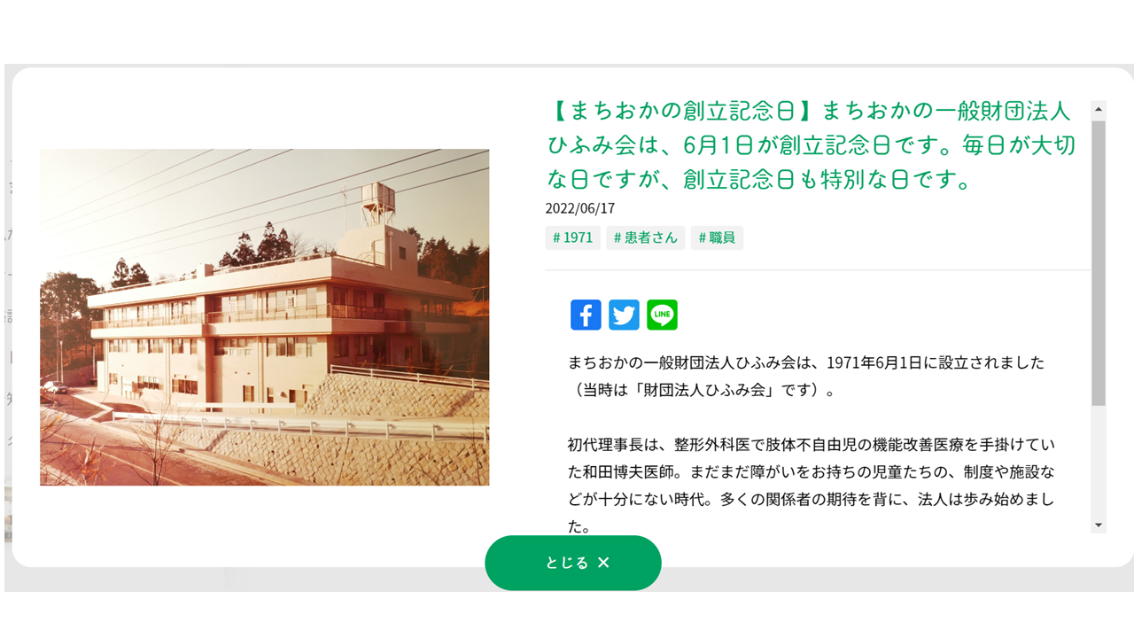 病院の日々の様子を絵日記の様に紹介する機能。各種SNSと連動している。