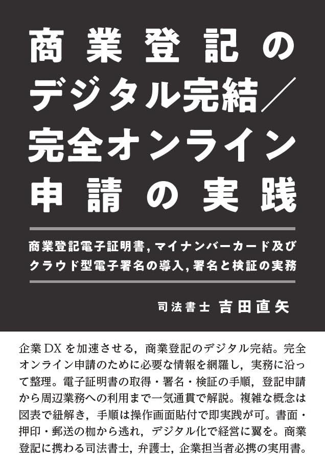 『商業登記のデジタル完結/完全オンライン申請の実践―商業登記電子証明書、マイナンバーカード及びクラウド型電子署名の導入、署名と検証の実務―』が刊行