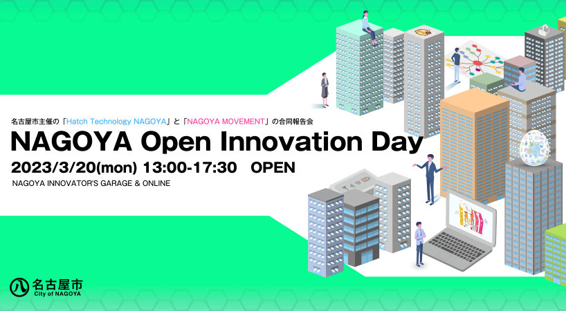 名古屋市では、今年度実施した先進技術社会実証支援事業「Hatch Technology NAGOYA(ハッチ・テクノロジー・ナゴヤ)」とスタートアップ共創促進事業「NAGOYA Movement(ナゴヤ・ムーブメント)」の事業成果にかかる報告会を、下記のとおり開催します。