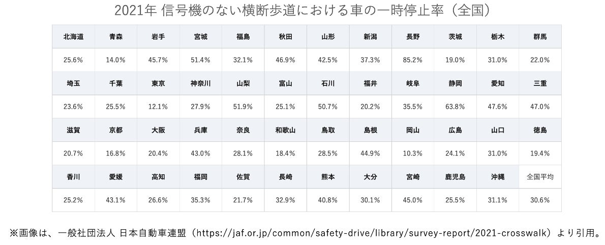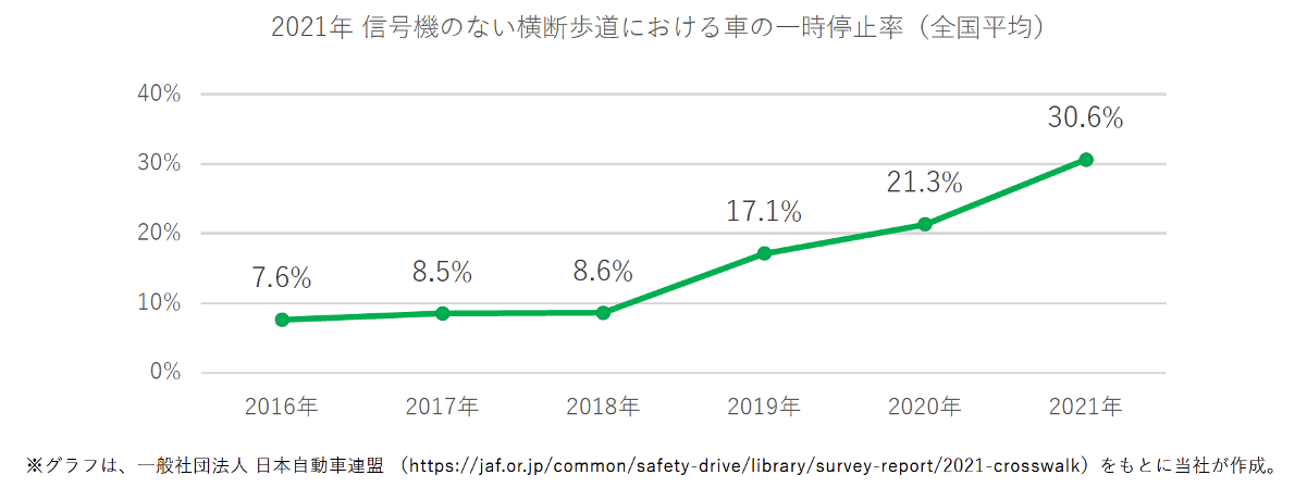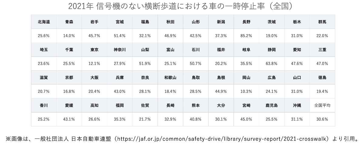 ※1 出典: 一般社団法人 日本自動車連盟(JAF) : https://jaf.or.jp/common/safety-drive/library/survey-report/2021-crosswalk